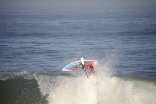 Its day 2 of the action and I’m spent after over 12 hours down the beach and they’re still going! There so much quality surfing went down today I think it should go down as one of waveski’s greatest days. Today’s big moment had to be when the defending champ was sent to the rep round by Andre Burger and Cyril Sampson in an epic clash. Rees then went for it in his seniors heat, scoring the highest wave score of the event with a 9.8 on one of his waves with a double aerial, I think he means business now.